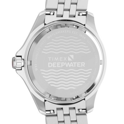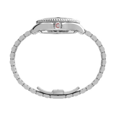 Diese Timex Uhr hat ein Edelstahl Gehäuse mit einem Durchmesser von 42 mm und ist mit einem Armband aus Edelstahl versehen. In der Uhr arbeitet ein Timex Uhrwerk. Das Glas der Uhr besteht aus Sapphir - Glas.