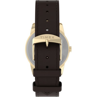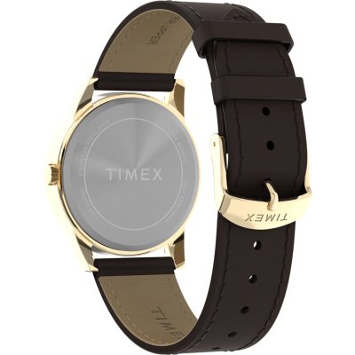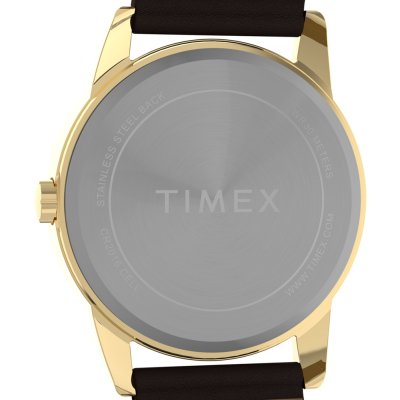 Diese Timex Uhr hat ein Metalllegierung Gehäuse mit einem Durchmesser von 38 mm und ist mit einem Armband aus Leder versehen. In der Uhr arbeitet ein Timex Uhrwerk. Das Glas der Uhr besteht aus Mineral - Glas.