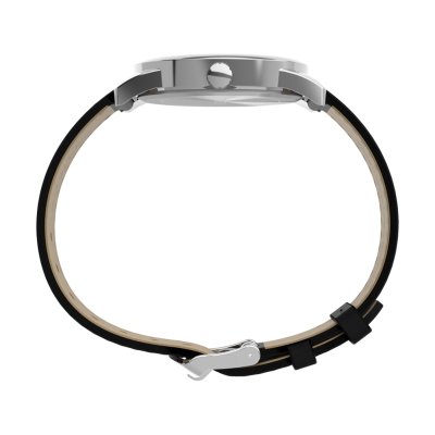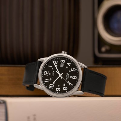 Diese Timex Uhr hat ein Metalllegierung Gehäuse mit einem Durchmesser von 38 mm und ist mit einem Armband aus Leder versehen. In der Uhr arbeitet ein Timex Uhrwerk. Das Glas der Uhr besteht aus Mineral - Glas.