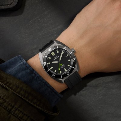 Diese Timex Uhr hat ein Titan Gehäuse mit einem Durchmesser von 41 mm und ist mit einem Armband aus Bio-Kunststoff versehen. In der Uhr arbeitet ein Timex Uhrwerk. Das Glas der Uhr besteht aus Sapphir - Glas.