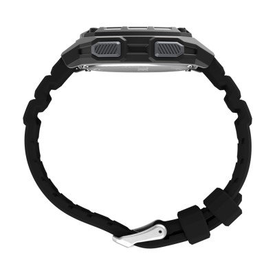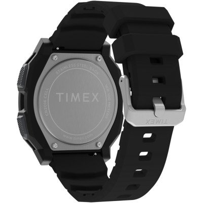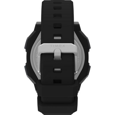 Diese Timex Uhr hat ein Kunstharz Gehäuse mit einem Durchmesser von 43 mm und ist mit einem Armband aus Kautschuk versehen. In der Uhr arbeitet ein Timex Uhrwerk. Das Glas der Uhr besteht aus Acryl - Glas.