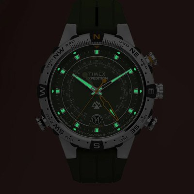 Diese Timex Uhr hat ein Edelstahl Gehäuse mit einem Durchmesser von 45 mm und ist mit einem Armband aus Kautschuk versehen. In der Uhr arbeitet ein Timex Uhrwerk. Das Glas der Uhr besteht aus Mineral - Glas.