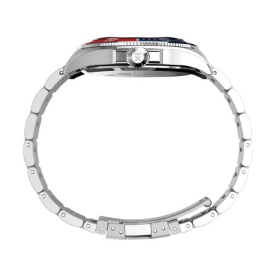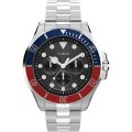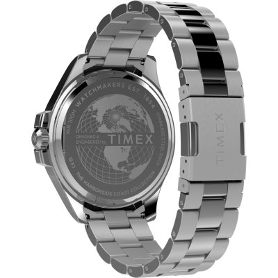 Diese Timex Uhr hat ein Metalllegierung Gehäuse mit einem Durchmesser von 43 mm und ist mit einem Armband aus Edelstahl versehen. In der Uhr arbeitet ein Timex Uhrwerk. Das Glas der Uhr besteht aus Mineral - Glas.