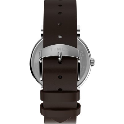 Diese Timex Uhr hat ein Metalllegierung Gehäuse mit einem Durchmesser von 38 mm und ist mit einem Armband aus Leder versehen. In der Uhr arbeitet ein Timex Uhrwerk. Das Glas der Uhr besteht aus Mineral - Glas.