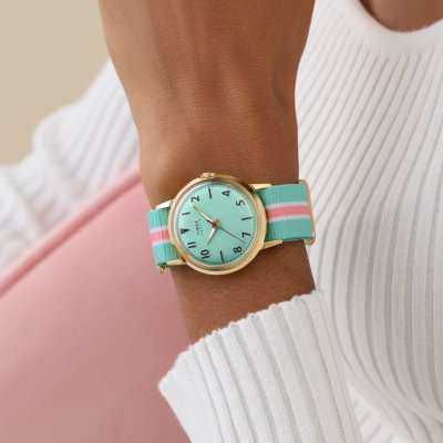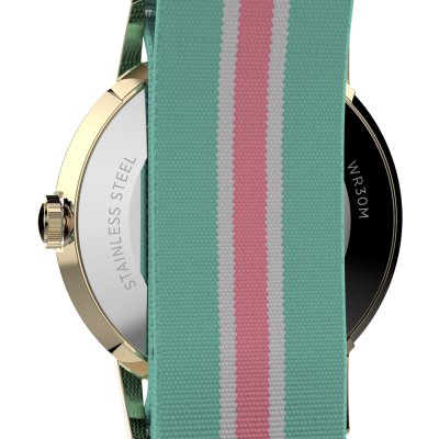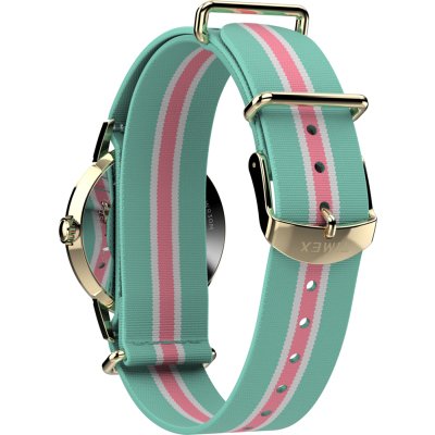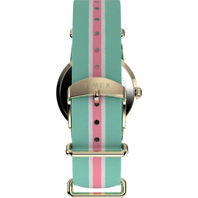 Diese Timex Uhr hat ein Edelstahl Gehäuse mit einem Durchmesser von 34 mm und ist mit einem Armband aus Textil versehen. In der Uhr arbeitet ein Timex Uhrwerk. Das Glas der Uhr besteht aus Acryl - Glas.