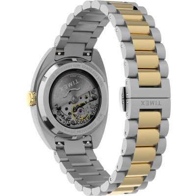 Diese Timex Uhr hat ein Edelstahl Gehäuse mit einem Durchmesser von 37 mm und ist mit einem Armband aus Edelstahl versehen. In der Uhr arbeitet ein Timex Uhrwerk. Das Glas der Uhr besteht aus Mineral - Glas.