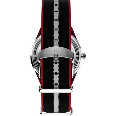Diese Timex Uhr hat ein Edelstahl Gehäuse mit einem Durchmesser von 38 mm und ist mit einem Armband aus Textil versehen. In der Uhr arbeitet ein Timex Uhrwerk. Das Glas der Uhr besteht aus Acryl - Glas.