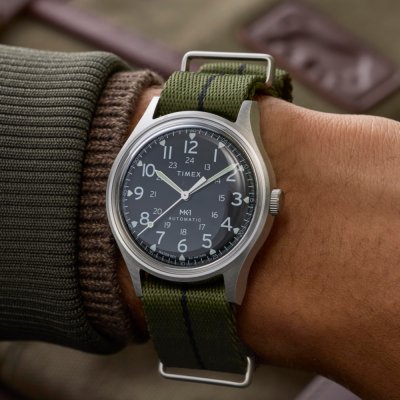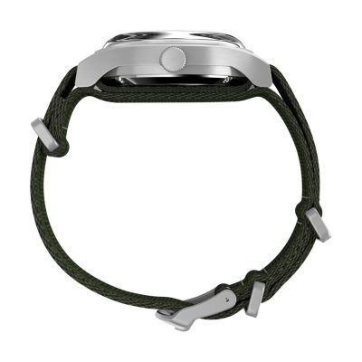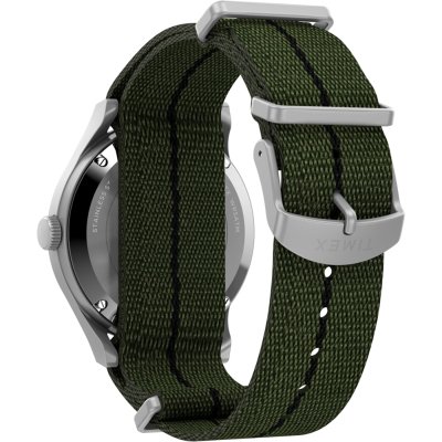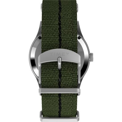 Diese Timex Uhr hat ein Edelstahl Gehäuse mit einem Durchmesser von 40 mm und ist mit einem Armband aus Textil versehen. In der Uhr arbeitet ein Timex Uhrwerk. Das Glas der Uhr besteht aus Acryl - Glas.