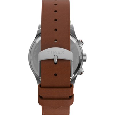 Diese Timex Uhr hat ein Edelstahl Gehäuse mit einem Durchmesser von 40 mm und ist mit einem Armband aus Leder versehen. In der Uhr arbeitet ein Timex Uhrwerk. Das Glas der Uhr besteht aus Acryl - Glas.