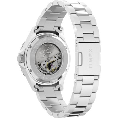 Diese Timex Uhr hat ein Edelstahl Gehäuse mit einem Durchmesser von 41 mm und ist mit einem Armband aus Edelstahl versehen. In der Uhr arbeitet ein Timex Uhrwerk. Das Glas der Uhr besteht aus Mineral - Glas.