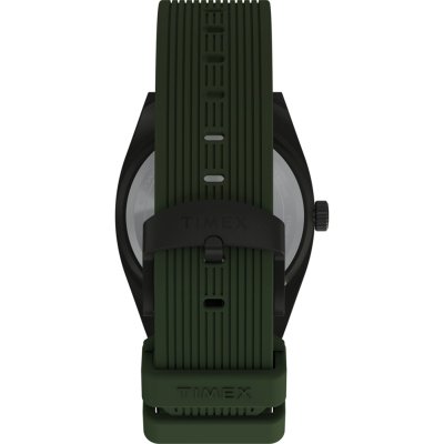 Diese Timex Uhr hat ein Metalllegierung Gehäuse mit einem Durchmesser von 39 mm und ist mit einem Armband aus Kautschuk versehen. In der Uhr arbeitet ein Timex Uhrwerk. Das Glas der Uhr besteht aus Mineral - Glas.
