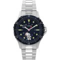 Diese Timex Uhr hat ein Edelstahl Gehäuse mit einem Durchmesser von 41 mm und ist mit einem Armband aus Edelstahl versehen. In der Uhr arbeitet ein Timex Uhrwerk. Das Glas der Uhr besteht aus Mineral - Glas.