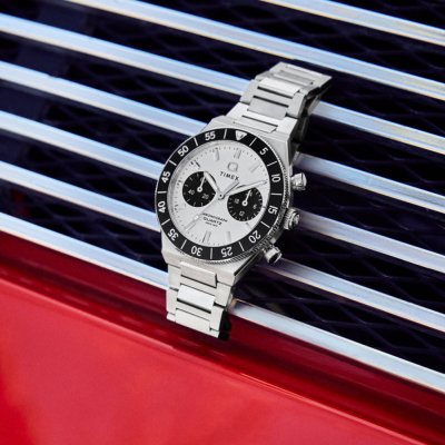 Diese Timex Uhr hat ein Edelstahl Gehäuse mit einem Durchmesser von 40 mm und ist mit einem Armband aus Edelstahl versehen. In der Uhr arbeitet ein Timex Uhrwerk. Das Glas der Uhr besteht aus Mineral - Glas.