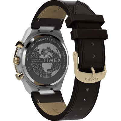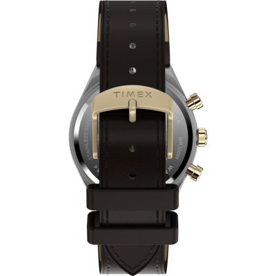 Diese Timex Uhr hat ein Edelstahl Gehäuse mit einem Durchmesser von 40 mm und ist mit einem Armband aus Leder versehen. In der Uhr arbeitet ein Timex Uhrwerk. Das Glas der Uhr besteht aus Mineral - Glas.