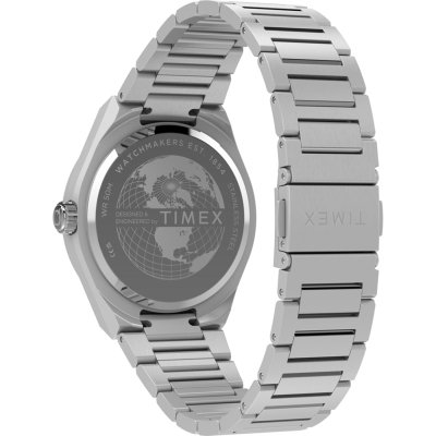 Diese Timex Uhr hat ein Edelstahl Gehäuse mit einem Durchmesser von 39 mm und ist mit einem Armband aus Edelstahl versehen. In der Uhr arbeitet ein Timex Uhrwerk. Das Glas der Uhr besteht aus Mineral - Glas.