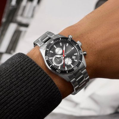 Diese Timex Uhr hat ein Edelstahl Gehäuse mit einem Durchmesser von 42 mm und ist mit einem Armband aus Edelstahl versehen. In der Uhr arbeitet ein Timex Uhrwerk. Das Glas der Uhr besteht aus Mineral - Glas.