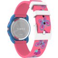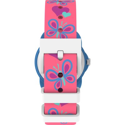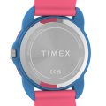 Diese Timex Uhr hat ein Kunstharz Gehäuse mit einem Durchmesser von 30 mm und ist mit einem Armband aus Kautschuk versehen. In der Uhr arbeitet ein Timex Uhrwerk. Das Glas der Uhr besteht aus Acryl - Glas.