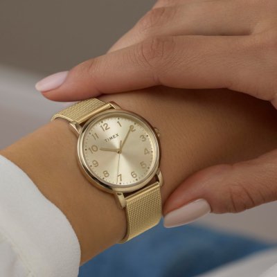 Diese Timex Uhr hat ein Metalllegierung Gehäuse mit einem Durchmesser von 38 mm und ist mit einem Armband aus Edelstahl versehen. In der Uhr arbeitet ein Timex Uhrwerk. Das Glas der Uhr besteht aus Mineral - Glas.