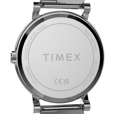 Diese Timex Uhr hat ein Metalllegierung Gehäuse mit einem Durchmesser von 38 mm und ist mit einem Armband aus Edelstahl versehen. In der Uhr arbeitet ein Timex Uhrwerk. Das Glas der Uhr besteht aus Mineral - Glas.
