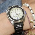 Diese Timex Uhr hat ein Edelstahl Gehäuse mit einem Durchmesser von 36 mm und ist mit einem Armband aus Kautschuk versehen. In der Uhr arbeitet ein Timex Uhrwerk. Das Glas der Uhr besteht aus Mineral - Glas.