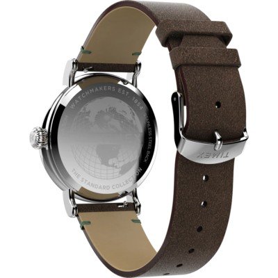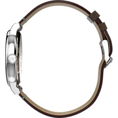 Diese Timex Uhr hat ein Metalllegierung Gehäuse mit einem Durchmesser von 40 mm und ist mit einem Armband aus Leder versehen. In der Uhr arbeitet ein Timex Uhrwerk. Das Glas der Uhr besteht aus Mineral - Glas.