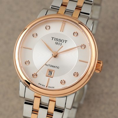 Diese Tissot Uhr hat ein Edelstahl Gehäuse mit einem Durchmesser von 30 mm und ist mit einem Armband aus Edelstahl versehen. In der Uhr arbeitet ein ETA Uhrwerk. Das Glas der Uhr besteht aus Sapphir - Glas.
