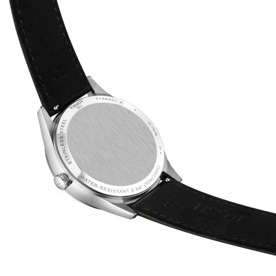 Diese Tissot Uhr hat ein Edelstahl Gehäuse mit einem Durchmesser von 40 mm und ist mit einem Armband aus Leder versehen. In der Uhr arbeitet ein ETA Uhrwerk. Das Glas der Uhr besteht aus Sapphir - Glas.