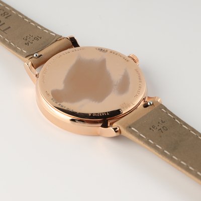 Diese Tissot Uhr hat ein Edelstahl Gehäuse mit einem Durchmesser von 34 mm und ist mit einem Armband aus Leder versehen. In der Uhr arbeitet ein ETA Uhrwerk. Das Glas der Uhr besteht aus Sapphir - Glas.
