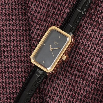 Die Serie SRV von Tissot ist eine Reihe raffinierter, femininer Uhren, die vom Art déco inspiriert sind und zusätzlich über ein brillantes, facettiertes Saphirglas und glänzende Zifferblätter mit Sonnenschliff oder Perlmutt verfügen. Das moderne Edelstahlarmband oder das geschmeidige Lederarmband lassen sich dank des Schnellwechselsystems leicht wechseln. Scheuen Sie sich nicht, selbstbewusst zu glänzen, sei es in einem geschäftlichen Umfeld oder bei einem Abend in Bewegung.