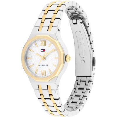 Diese Tommy Hilfiger Uhr hat ein Edelstahl Gehäuse mit einem Durchmesser von 25 mm und ist mit einem Armband aus Edelstahl versehen. In der Uhr arbeitet ein Seiko Uhrwerk. Das Glas der Uhr besteht aus Mineral - Glas.