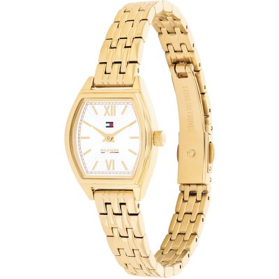 Diese Tommy Hilfiger Uhr hat ein Edelstahl Gehäuse mit einem Durchmesser von 22 mm und ist mit einem Armband aus Edelstahl versehen. In der Uhr arbeitet ein Uhrwerk. Das Glas der Uhr besteht aus Mineral - Glas.