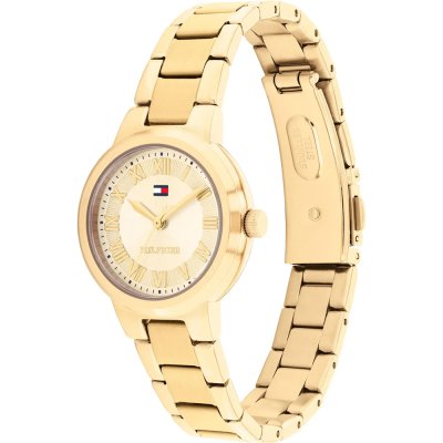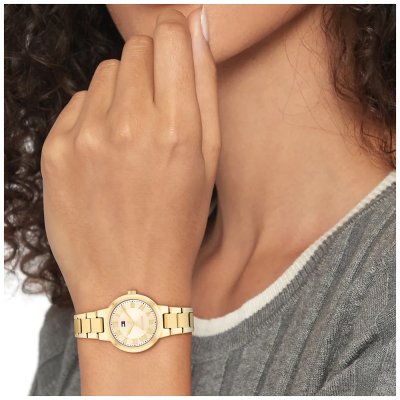 Diese Tommy Hilfiger Uhr hat ein Edelstahl Gehäuse mit einem Durchmesser von 28 mm und ist mit einem Armband aus Edelstahl versehen. In der Uhr arbeitet ein Seiko Uhrwerk. Das Glas der Uhr besteht aus Mineral - Glas.