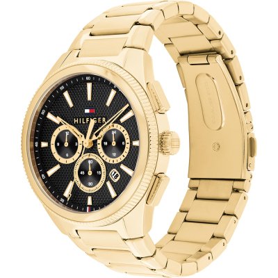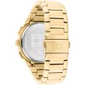 Diese Tommy Hilfiger Uhr hat ein Edelstahl Gehäuse mit einem Durchmesser von 43 mm und ist mit einem Armband aus Edelstahl versehen. In der Uhr arbeitet ein Seiko Instruments Inc. Uhrwerk. Das Glas der Uhr besteht aus Mineral - Glas.