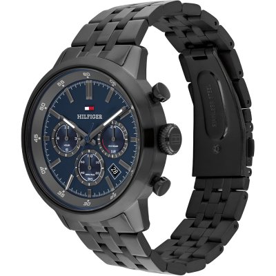 Diese Tommy Hilfiger Uhr hat ein Edelstahl Gehäuse mit einem Durchmesser von 43 mm und ist mit einem Armband aus Edelstahl versehen. In der Uhr arbeitet ein Seiko Instruments Inc. Uhrwerk. Das Glas der Uhr besteht aus Mineral - Glas.