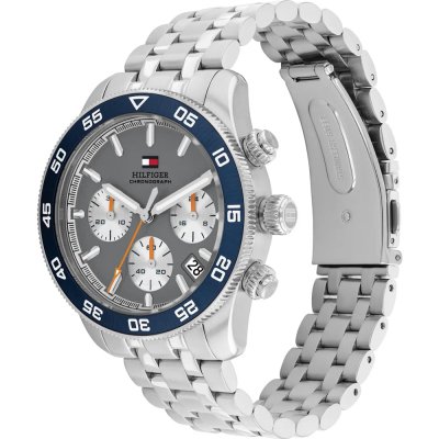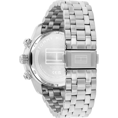 Diese Tommy Hilfiger Uhr hat ein Edelstahl Gehäuse mit einem Durchmesser von 41 mm und ist mit einem Armband aus Edelstahl versehen. In der Uhr arbeitet ein Seiko Instruments Inc. Uhrwerk. Das Glas der Uhr besteht aus Mineral - Glas.