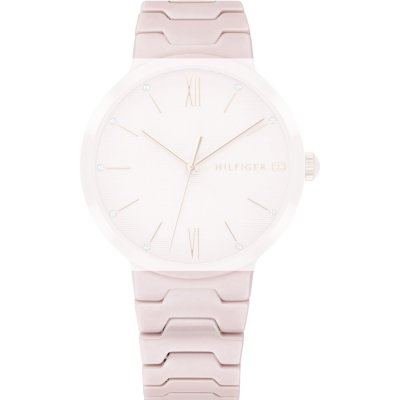 Dieses Tommy Hilfiger Uhrarmband ist aus keramik gefertigt und wird mit stahlstifte an der Uhr befestigt. Das Band hat eine Breite von 18 mm und wird mit einer faltschließe mit Druckknöpfen geschlossen. Das Uhrenarmband hat keine gerade Halterung, was bedeutet, dass dieses Band nur für die unten aufgeführten Uhren geeignet ist.
