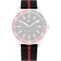 Dieses Tommy Hilfiger Uhrarmband ist aus textil gefertigt und wird mit druckstifte an der Uhr befestigt. Das Band hat eine Breite von 20 mm und wird mit einer dornschließe geschlossen. Das Band hat eine gerade Halterung, was bedeutet, dass dieses Band für alle Tommy Hilfigeruhren mit einer geraden Halterung geeignet ist.
