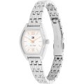 Diese Tommy Hilfiger Uhr hat ein Edelstahl Gehäuse mit einem Durchmesser von 22 mm und ist mit einem Armband aus Edelstahl versehen. In der Uhr arbeitet ein Uhrwerk. Das Glas der Uhr besteht aus Mineral - Glas.