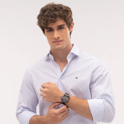 Diese Tommy Hilfiger Uhr hat ein Edelstahl Gehäuse mit einem Durchmesser von 39 mm und ist mit einem Armband aus Edelstahl versehen. In der Uhr arbeitet ein Seiko Instruments Inc. Uhrwerk. Das Glas der Uhr besteht aus Mineral - Glas.