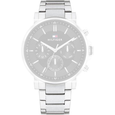 Dieses Tommy Hilfiger Uhrarmband ist aus edelstahl gefertigt und wird mit stahlstifte an der Uhr befestigt. Das Band hat eine Breite von 22 mm und wird mit einer faltschließe mit Druckknöpfen geschlossen. Das Uhrenarmband hat keine gerade Halterung, was bedeutet, dass dieses Band nur für die unten aufgeführten Uhren geeignet ist.