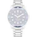 Dieses Tommy Hilfiger Uhrarmband ist aus edelstahl gefertigt und wird mit druckstifte an der Uhr befestigt. Das Band hat eine Breite von 20 mm und wird mit einer faltschließe mit Druckknöpfen geschlossen. Das Uhrenarmband hat keine gerade Halterung, was bedeutet, dass dieses Band nur für die unten aufgeführten Uhren geeignet ist.