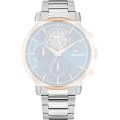 Dieses Tommy Hilfiger Uhrarmband ist aus edelstahl gefertigt und wird mit druckstifte an der Uhr befestigt. Das Band hat eine Breite von 22 mm und wird mit einer faltschließe mit Druckknöpfen geschlossen. Das Uhrenarmband hat keine gerade Halterung, was bedeutet, dass dieses Band nur für die unten aufgeführten Uhren geeignet ist.
