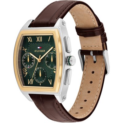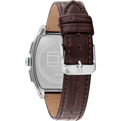 Diese Tommy Hilfiger Uhr hat ein Edelstahl Gehäuse mit einem Durchmesser von 36 mm und ist mit einem Armband aus Leder versehen. In der Uhr arbeitet ein Seiko Instruments Inc. Uhrwerk. Das Glas der Uhr besteht aus Mineral - Glas.