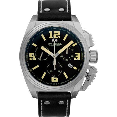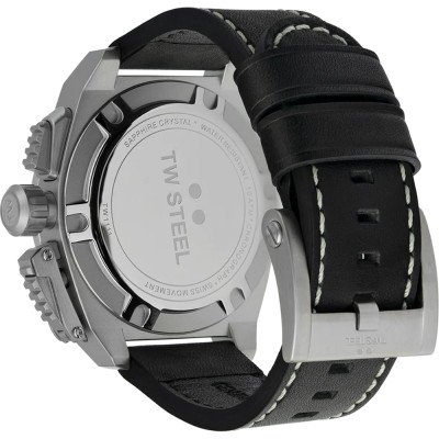 Diese TW Steel Uhr hat ein Edelstahl Gehäuse mit einem Durchmesser von 46 mm und ist mit einem Armband aus Leder versehen. In der Uhr arbeitet ein Ronda Uhrwerk. Das Glas der Uhr besteht aus Einfaches reflektionsfreies Saphirglas - Glas.