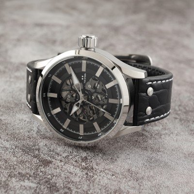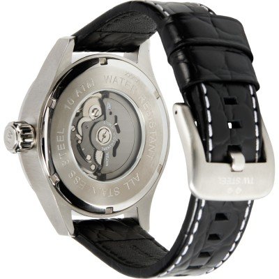 Diese TW Steel Uhr hat ein Edelstahl Gehäuse mit einem Durchmesser von 45 mm und ist mit einem Armband aus Leder versehen. In der Uhr arbeitet ein Seiko Instruments Inc. Uhrwerk. Das Glas der Uhr besteht aus Gehärtetem Mineral - Glas.