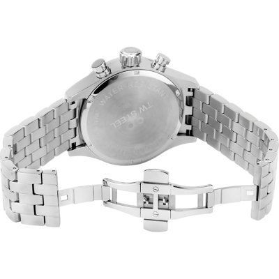Diese TW Steel Uhr hat ein Edelstahl Gehäuse mit einem Durchmesser von 45 mm und ist mit einem Armband aus Edelstahl versehen. In der Uhr arbeitet ein Seiko Instruments Inc. Uhrwerk. Das Glas der Uhr besteht aus Gehärtetem Mineral - Glas.