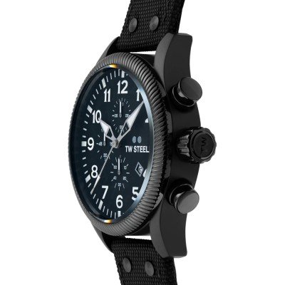 Diese TW Steel Uhr hat ein Edelstahl Gehäuse mit einem Durchmesser von 48 mm und ist mit einem Armband aus Textil versehen. In der Uhr arbeitet ein Seiko Instruments Inc. Uhrwerk. Das Glas der Uhr besteht aus Mineral - Glas.