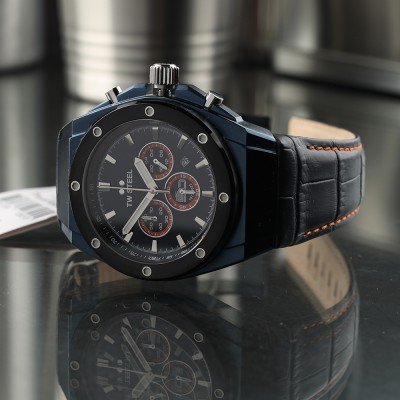 Diese TW Steel Uhr hat ein Edelstahl Gehäuse mit einem Durchmesser von 44 mm und ist mit einem Armband aus Leder versehen. In der Uhr arbeitet ein Miyota Uhrwerk. Das Glas der Uhr besteht aus Saphirbeschichtetes Mineralglas - Glas.