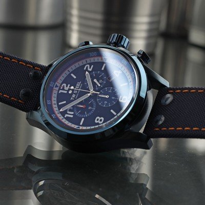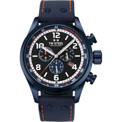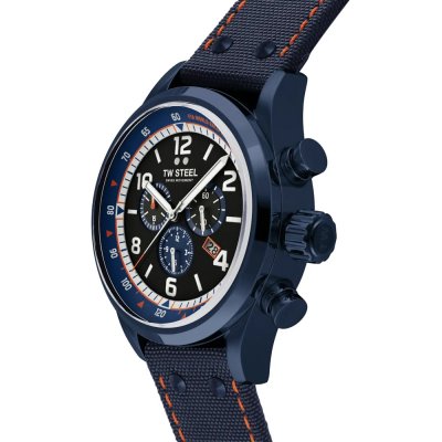 Diese TW Steel Uhr hat ein Edelstahl Gehäuse mit einem Durchmesser von 48 mm und ist mit einem Armband aus Textil auf Leder versehen. In der Uhr arbeitet ein Ronda Uhrwerk. Das Glas der Uhr besteht aus Einfaches reflektionsfreies Saphirglas - Glas.