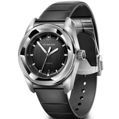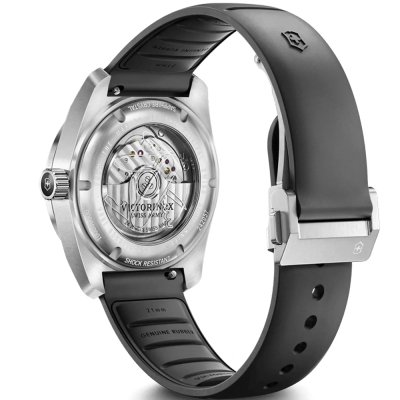Diese Victorinox Uhr hat ein Edelstahl Gehäuse mit einem Durchmesser von 39 mm und ist mit einem Armband aus Kautschuk versehen. In der Uhr arbeitet ein La Joux-Perret Uhrwerk. Das Glas der Uhr besteht aus Einfaches reflektionsfreies Saphirglas - Glas.